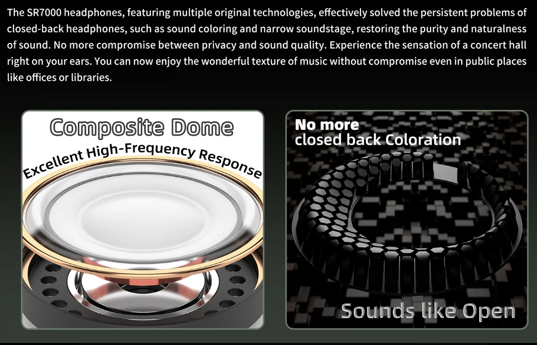 Aune SR7000 Full Size Close-Back Wired Headphones 55ohm 50mm Dynamic Driver Audiophile Wired Earphones HIFI audiophile headphone