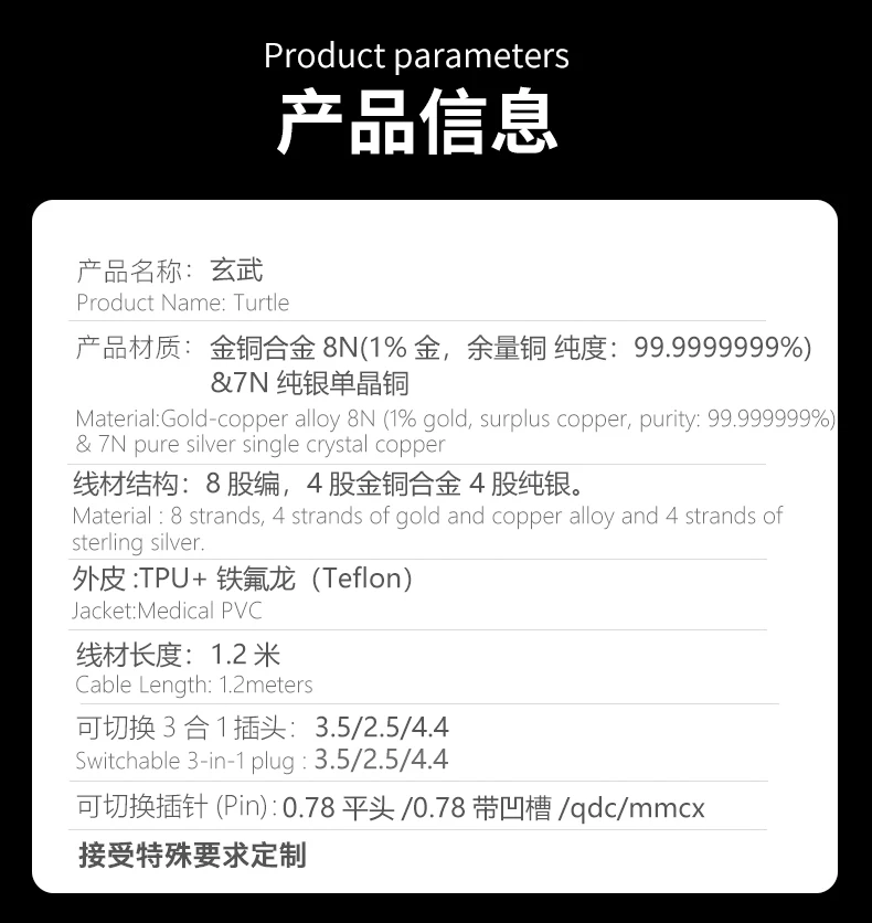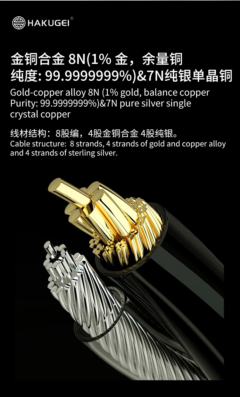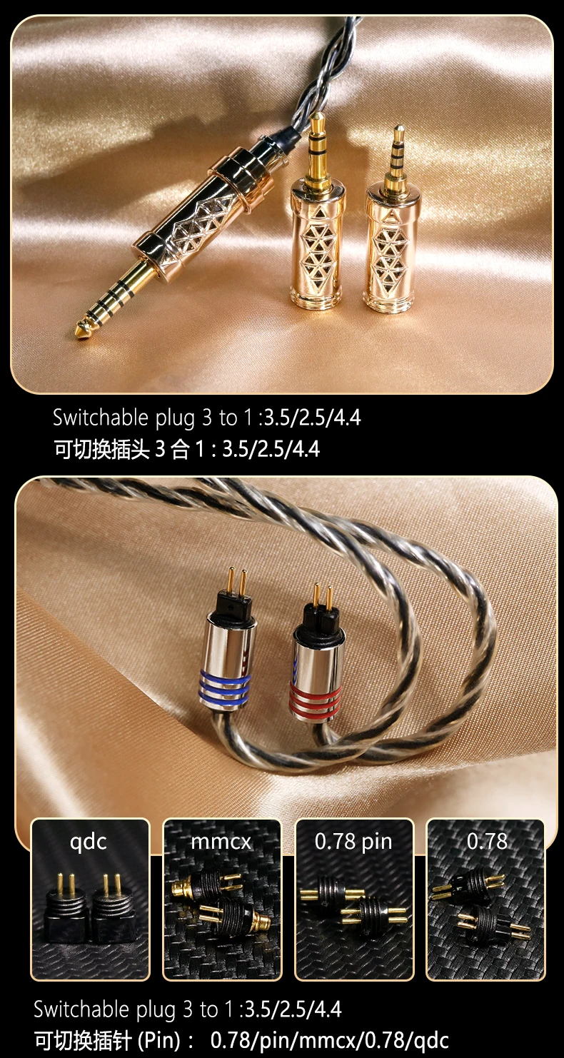 Hakugei Xuanwu 3-in-1 switchable plug pin diy8NOCC pure silver gold copper alloy upgrade earphone headset line cable diy hifi
