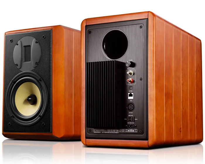 [xlmodel]-[custom]-[8888[xlmodel]-[photo]-[0000]M1A 2.0 Channel Hi-Fi Home Audio Multimedia Speakers wireless flagship bookshelf speakers Bluetooth, Wi-Fi, Optical LAN line putParametersM1ASystem TypeTwo-way 4th-order vented speaker systemDrivers Configuration6.5" midbass driver;isodynamic ribbon tweeteFrequency Range44Hz-20kHz ±3dB (free space)Harmonic Distortion90Hz-20kHz ≤1% (85dB/1m)Audio InputOptical, Bluetooth, Wi-Fi, RJ45Rated PowerRMS 120W×2Signal-to-Noise>91dB (Unweighted)Input sensitivity400mVInput impedance22kΩMaximum Input3000mVFinishLuxurious Solid Birch WoodDimension(W×D×H)9.45"×14.17"×14.53"Net Weight(each)Main Speaker: 30.64 lbs;Slave Speaker: 29.98 lbsContemporary Hi-Fi Wireless SpeakersM1A is Swan’s wireless flagship bookshelf speakers created for today’s internet cloud media era. It has acomplete set of interfaces, supporting Bluetooth, Wi-Fi, Optical, LAN and line put. It’s able to be used in theliving room, destop, gaming setup or professional recording studios etc.Award Winning SoundM1A uses the newest generation of Swan shielded isodynamic ribbon tweeter and a professional 6.5” Kevlarcone woofer. Each driver operates within their optimal linear range, making the two drivers work seamlesslytogether and enhancing the dynamic range of sound.Luxurious Solid Wood CabinetLuxurious high-density solid wood is applied to create a low resonance cabinet suitable for high-quality audioreproduction.Multifunctional Remote ControlAn easy switch between different modes can be done with this fashion wire drawing remote control. You can also adjust the volume to your own preference with it.