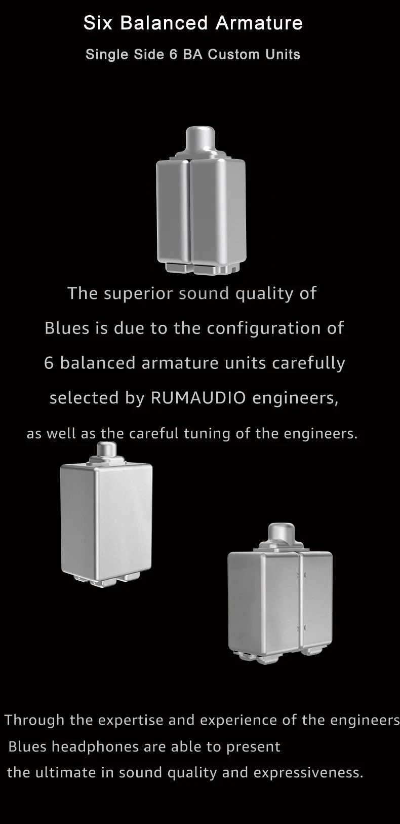 RUMAUDIO Blues In-ear wired Earphones Six Balanced Armature 6BA Hybrid 0.78mm 3.5mm 6BA Headphones