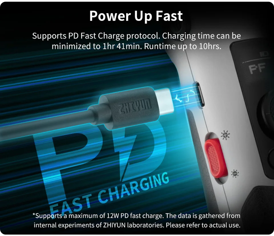 Support PD Fast Charge protocol. Charging time can be minimized to 1 hour 41 mins.