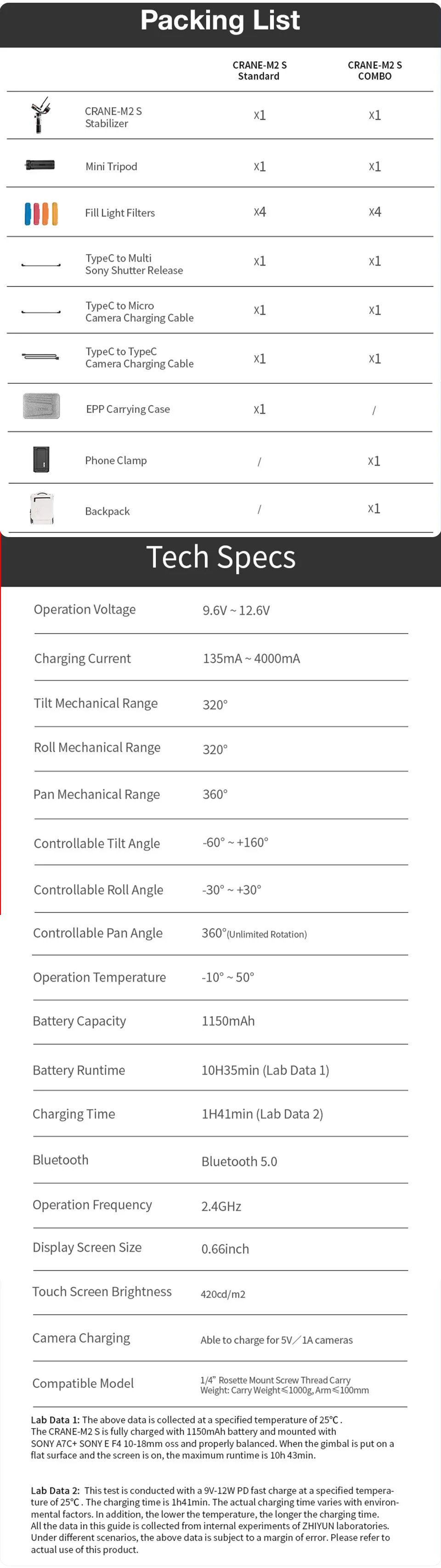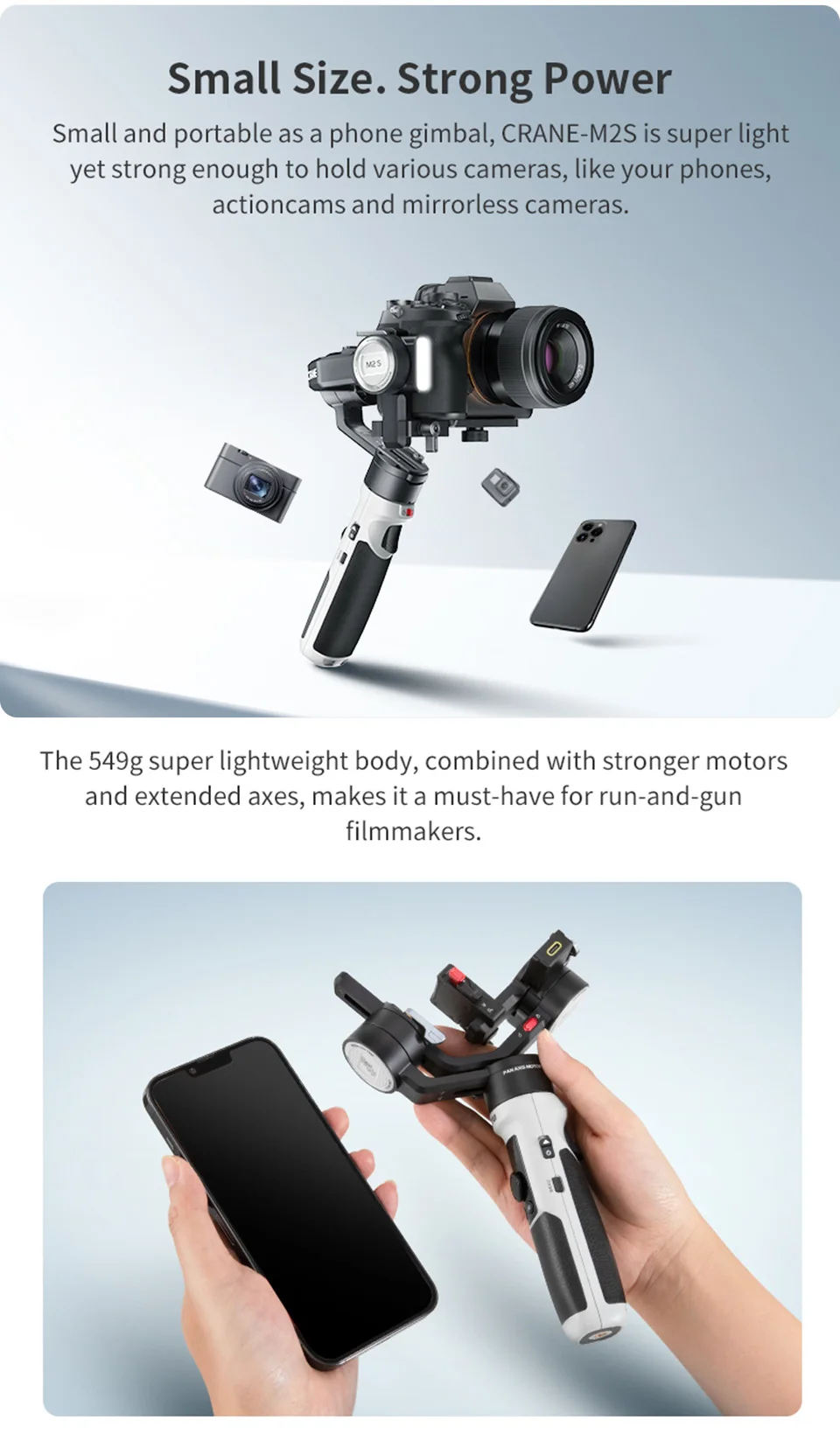 ZHIYUN Official CRANE M2S 3-Axis Mirrorless Cameras Gimbal Handheld Stabilizer for Sony Canon Action Compact Camera iPhone 14